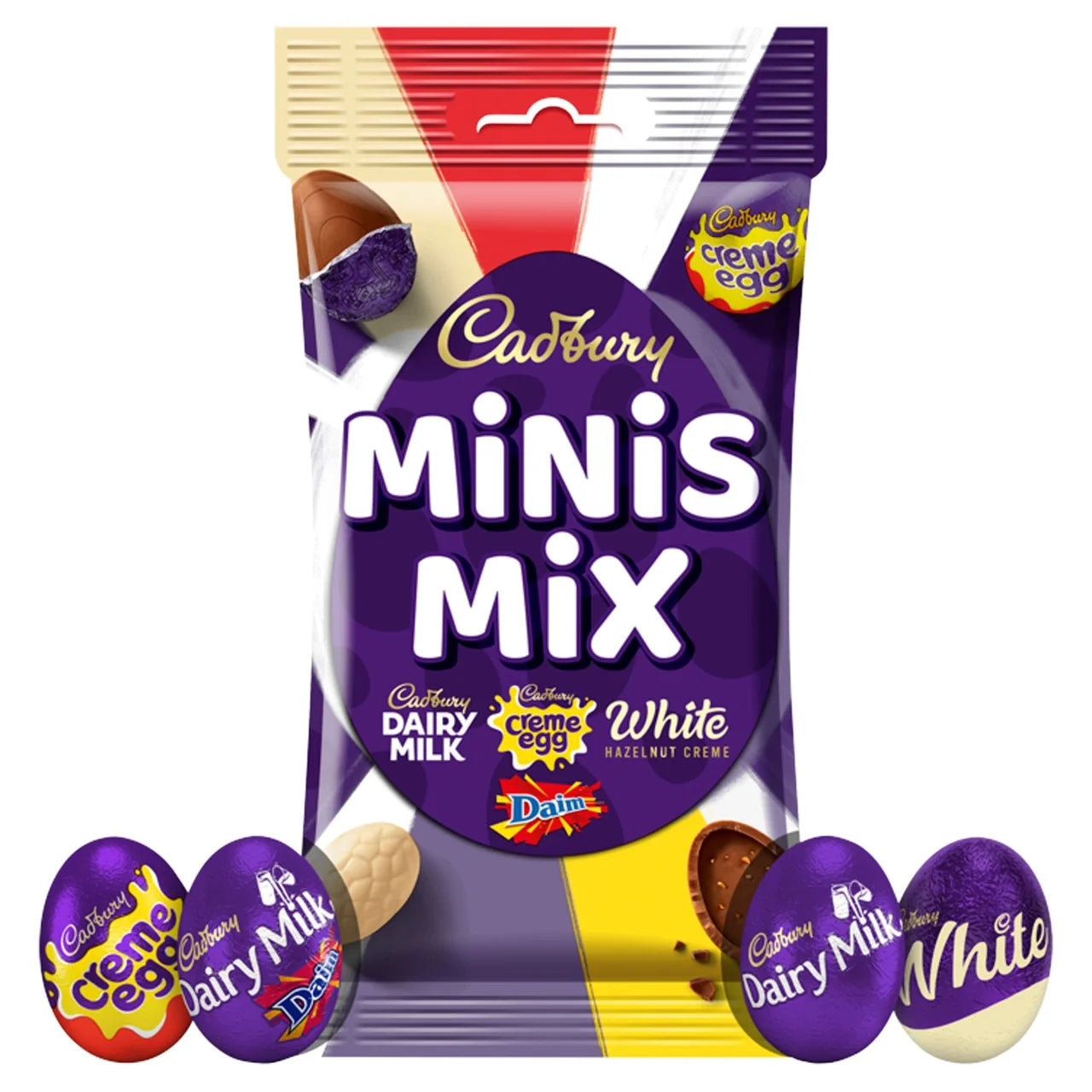 Celebrate Easter with the Cadbury Minis Mix 238g Bag - a selection of mini Cadbury eggs, including Mini Cadbury Creme Eggs, Cadbury Daim Eggs, Cadbury Dairy Milk Eggs, and Cadbury White Hazelnut Eggs. With a mix of textures and flavours, it's a great choice for gifting, sharing, or enjoying throughout the season. For over 200 years, Cadbury has been making chocolate that feels like home. From a little pick-me-up to something to share, its unmistakably creamy taste has been a part of everyday moments and big celebrations alike.
