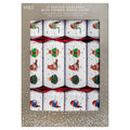 Gather your friends and loved ones and make their Christmas go off with a bang, with this M&S 12 Pack Christmas Crackers in 1 adorable Robins Design. This pack contains 12 crackers in 1 white design with festive robins dressed in festive jumpers and scarfs with gold foil details tied with red paper raffia ribbon. Each cracker contains 1 hat, 1 joke, 1 movie trivia question and 'Crimbo' bingo game cards.