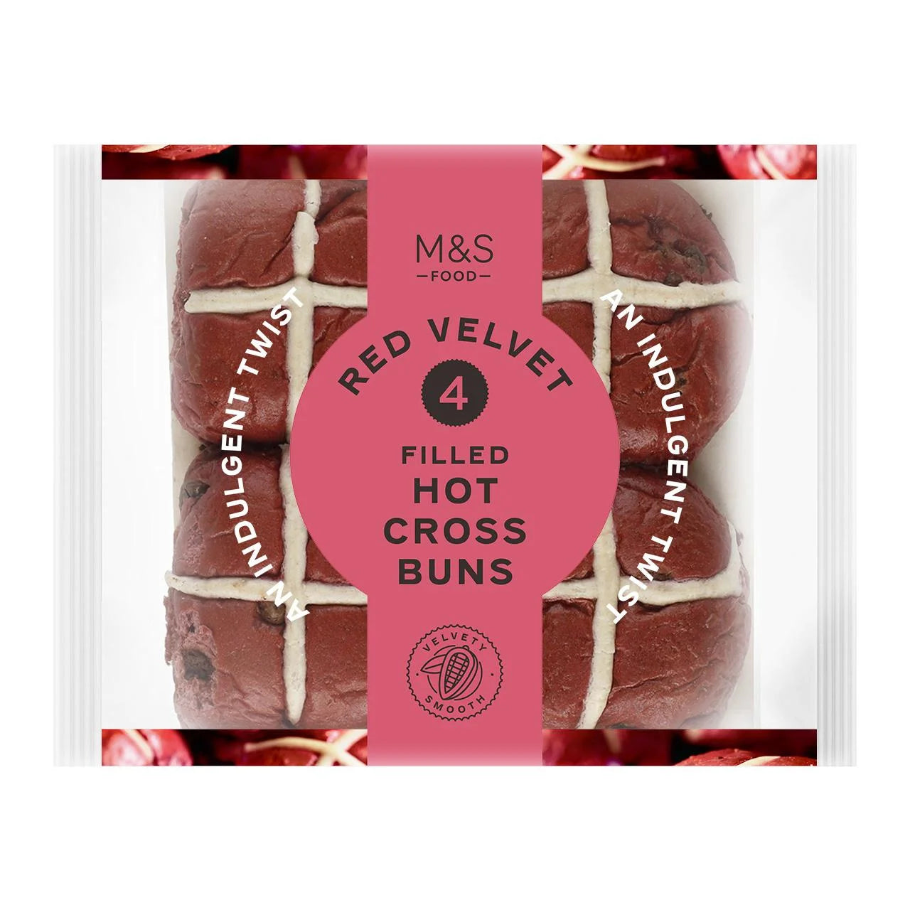 M&S 4 Red Velvet Hot Cross Buns
