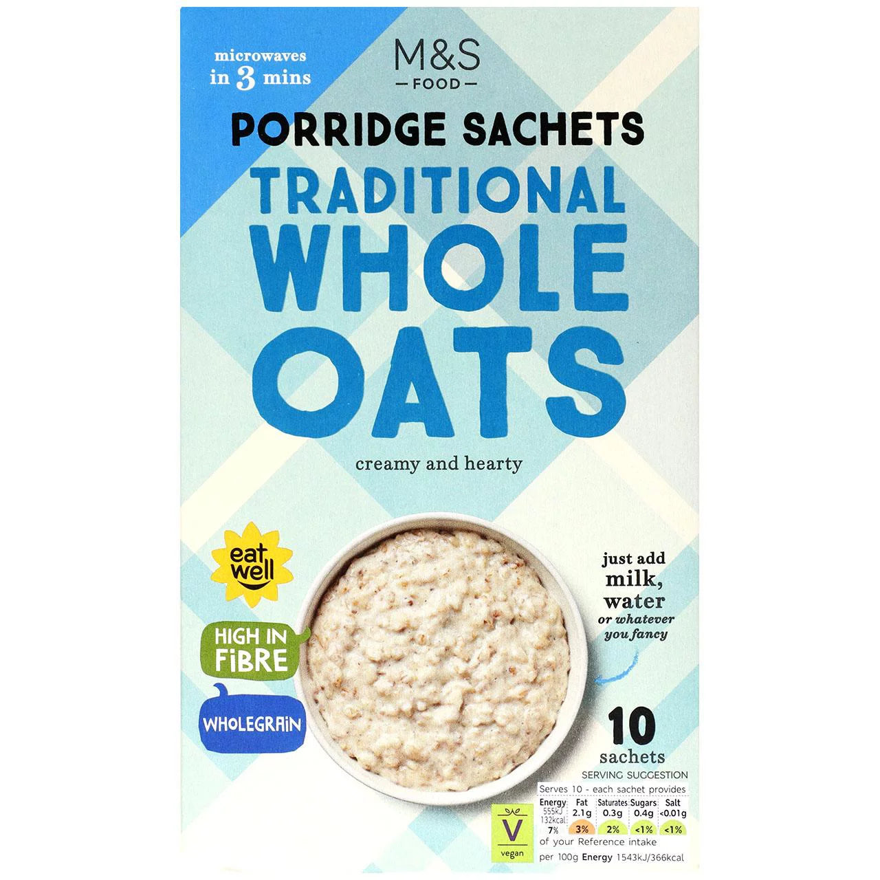 Energize your mornings with M&S Traditional Whole Oats Porridge! Packed with fiber, these creamy and hearty sachets are a delicious way to start your day. With our Eat Well flower, you can trust you're making a healthy choice. Just add milk or water and savor the benefits of a balanced diet.